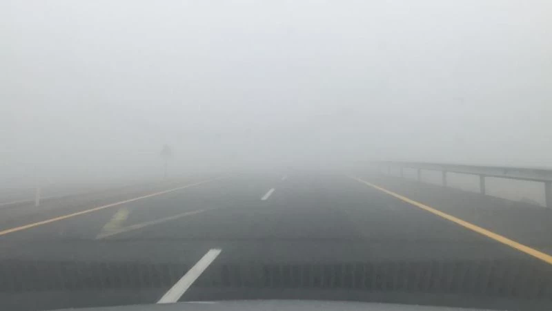 Yoğun sis nedeniyle trafikte seyreden sürücüler hızlarını düşürerek yavaş ilerledi.