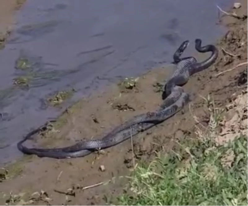 Bingöl’de yaklaşık 1,5 metrelik iki siyah yılanın dansı, cep telefonu kamerasına yansıdı.