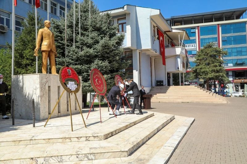 Hükümet Konağı önünde düzenlenen törene Vali Kadir Ekinci, Belediye Başkanı Erdal Arıkan, 49. Komando Tugay Komutanı Vekili Piyade Albay Necdet Durak, kamu kurum müdürleri, STK temsilcileri, jandarma, emniyet personeli, gazi ve şehit aileleriyle vatandaşlar katıldı. Törende Cumhurbaşkanı Recep Tayyip Erdoğan’ın mesajı okunmasının ardından, Atatürk anıtına valilik, 49. Komando Tugay Komutanlığı ve Bingöl Belediyesi tarafından çelenk sunuldu.