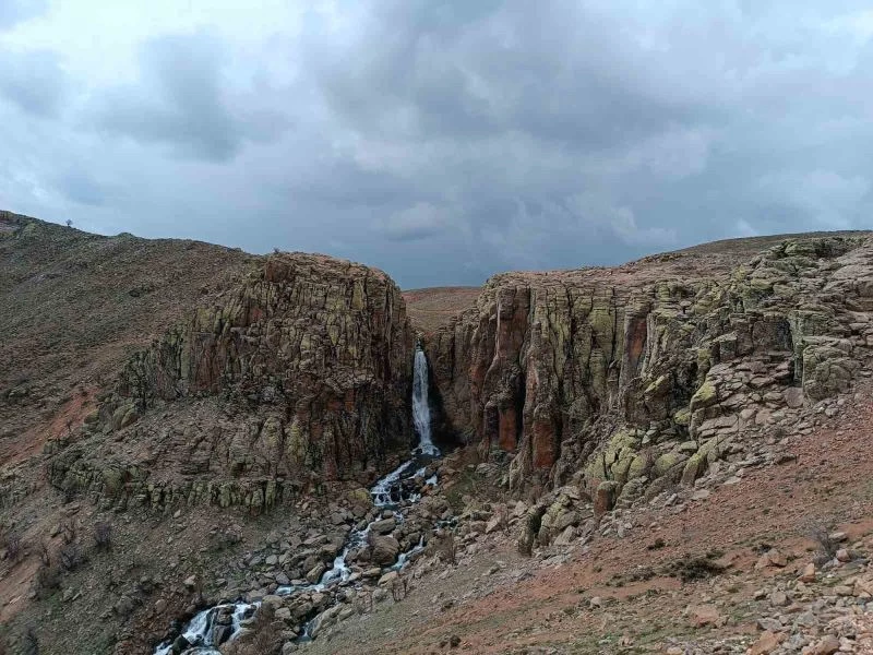 Bingöl’de yaz aylarında kuruyan, kış aylarında soğuklar nedeniyle donan 50 metrelik Çır şelalesi, bahar aylarında karların erimesiyle coştu.