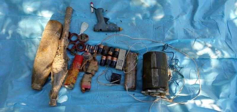 Ele geçirilen malzemelerin, “1 adet mühimmat harp başlığı tadil edilerek düzenlenmiş EYP, 1 adet ALFA/FİRE alıcı devresi,1 adet ALFA/FİRE verici devresi, 1 adet 8’li pil bloğu, 4 m akım taşıyıcı kablo, 1 adet Antitank Roketatar mühimmatı, 1 adet 120 mm çapında Topçu Mühimmatı” olduğu aktarıldı.