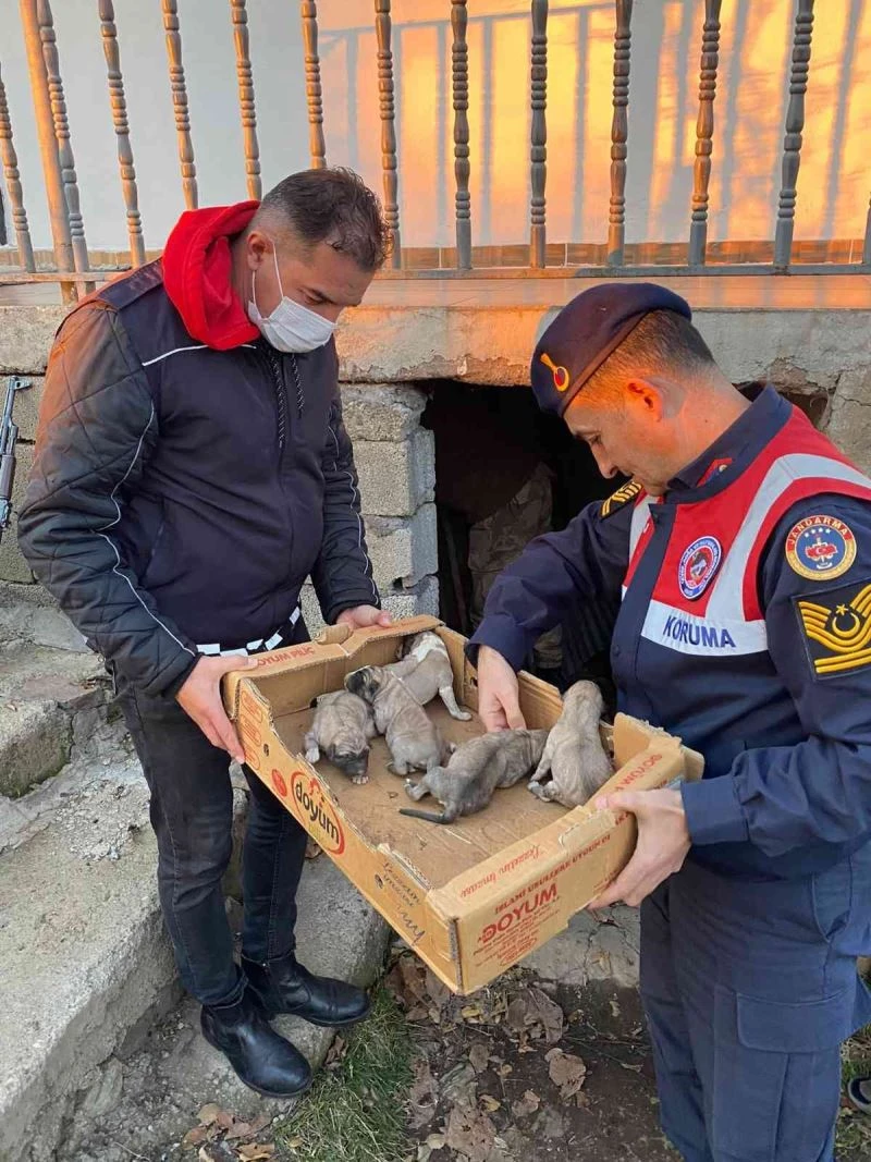Bingöl’de İl Jandarma Komutanlığı personeli, 8 yavru ve anne köpeği donmak üzereyken kurtarıp barınağa yerleştirdi.