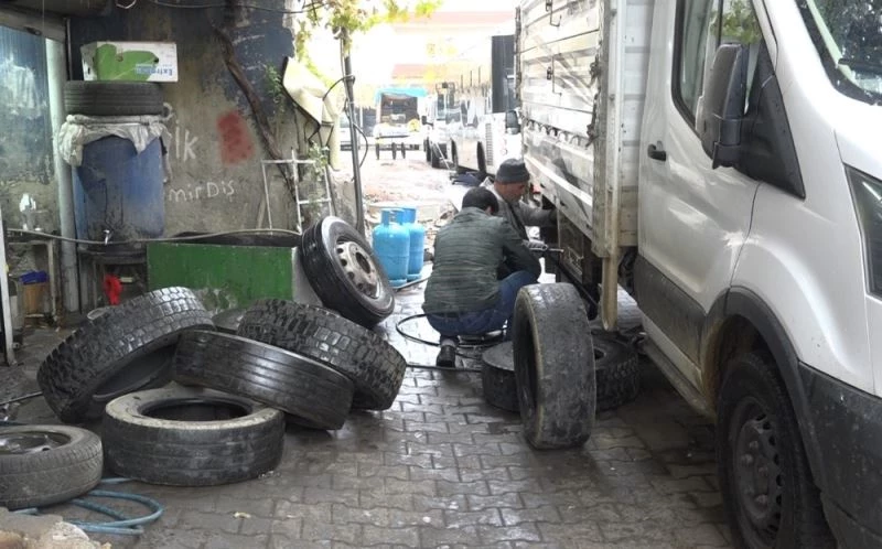 Bingöl’de oto lastikçilerin kış lastiği yoğunluğu