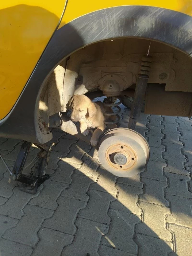 Bingöl’ün Genç ilçesinde bir otomobilin tekerine sıkışan yavru köpek, uzun uğraşlar sonucu kurtarıldı.