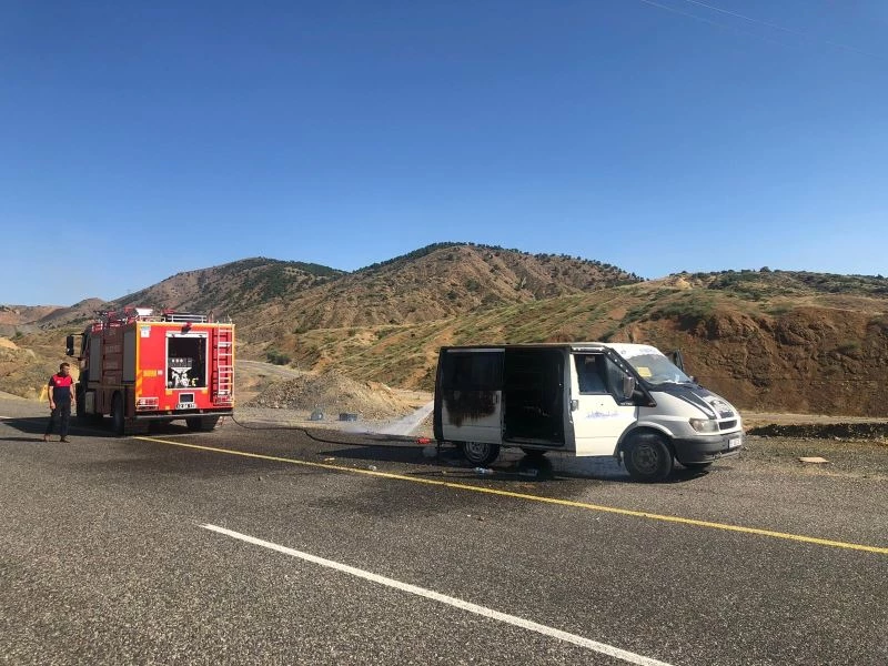 Bingöl’de seyir halindeki bir minibüs yanarak kullanılamaz hale geldi.
