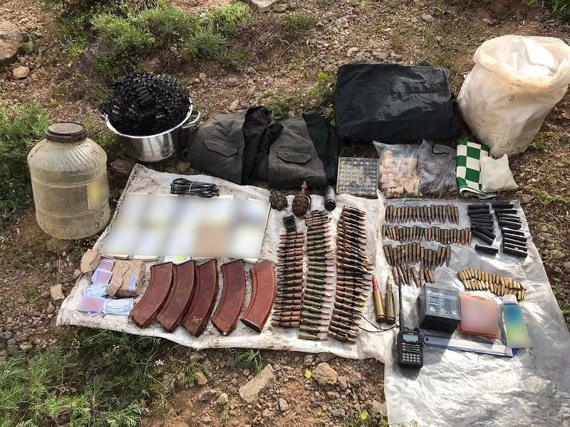 Bölücü terör örgütüne yönelik yapılan çalışmalar kapsamında ele geçirilen malzemelerin ise, 2 adet savunma el bombası, 1 adet ses bombası, 1 adet el telsizi, 112 adet mayonlu 7.62*54 mm fişek, 44 adet 7.62*51 mm fişek, 26 adet 7.62*39 mm fişek, 34 adet 9 mm tabanca fişeği, 2 adet 14,5 mm’lik uçaksavar mermisi, 5 adet Kaleşnikof şarjörü, 1 Adet BTÖ ye ait fotoğraf, 1 adet akü, 10 adet not defteri, 19 adet siyah renkli çakmak, 2 adet Lesker kıyafeti, çok sayıda bixi mayonu ve çeşitli ebatlarda naylon poşet, çok sayıda sigara kağıdı, 1 adet çelik tencere, 1 adet satranç ve tavla takımı, 1 adet traş jileti, 1 adet yağmurluk ve 1 adet 20 santim metal cetvel olduğu bildirildi.