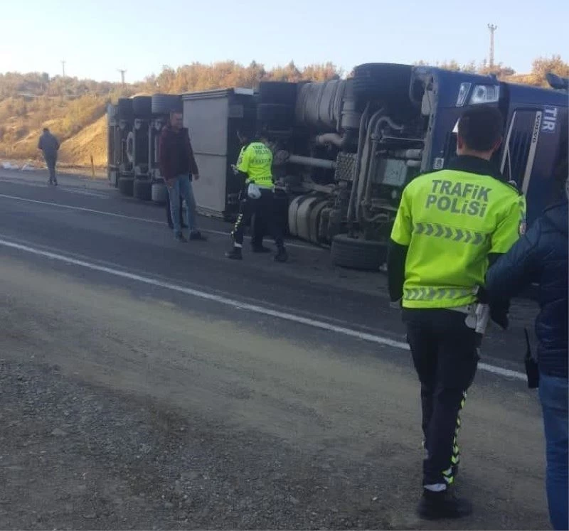 Kaza, Genç-Diyarbakır Karayolu Küpar mevkiinde meydana geldi. Alınan bilgilere göre, yabancı plakalı tır, freni boşalması nedeniyle devrildi. Kazada sürücü yara almazken, tırdan yola yağ ve mazot aktı. Bölgeye sevk edilen polis ve itfaiye ekipleri, yolu bir süre kontrollü olarak trafiğe kapattı.