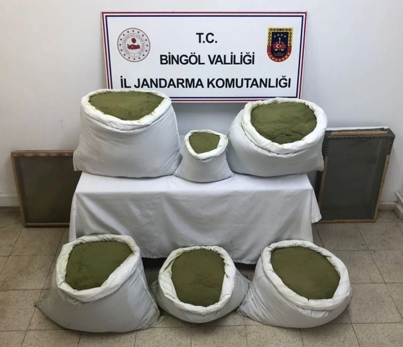 Bingöl’de İl Jandarma Komutanlığı ekiplerince yapılan operasyonda 101 kilo toz esrar 2 bin kök kenevir bitkisi ele geçirildi.