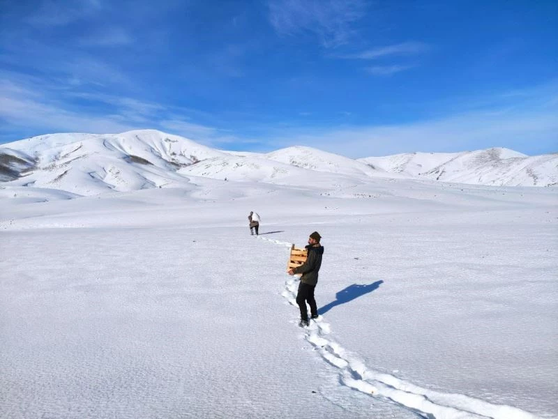 Bingöl’de kış mevsimi nedeniyle yüksek rakımlı bölgelere yaban hayvanları için yem bırakıldı.