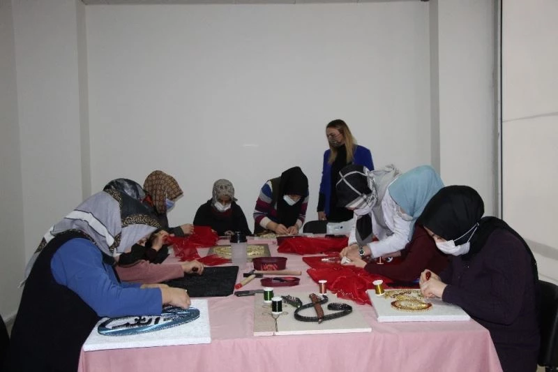 Bingöl’de Aile Destek Merkezi’ne giden kadınlar, hem sanat öğreniyor hem de ortaya çıkardıkları el emeği göz nuru ürünleri satarak aile ekonomisine katkı sunuyor.