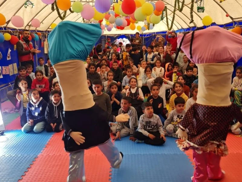 Bingöl’ün tiyatro ekibi, Adıyaman’daki çadır kentte çocukları eğlendirdi