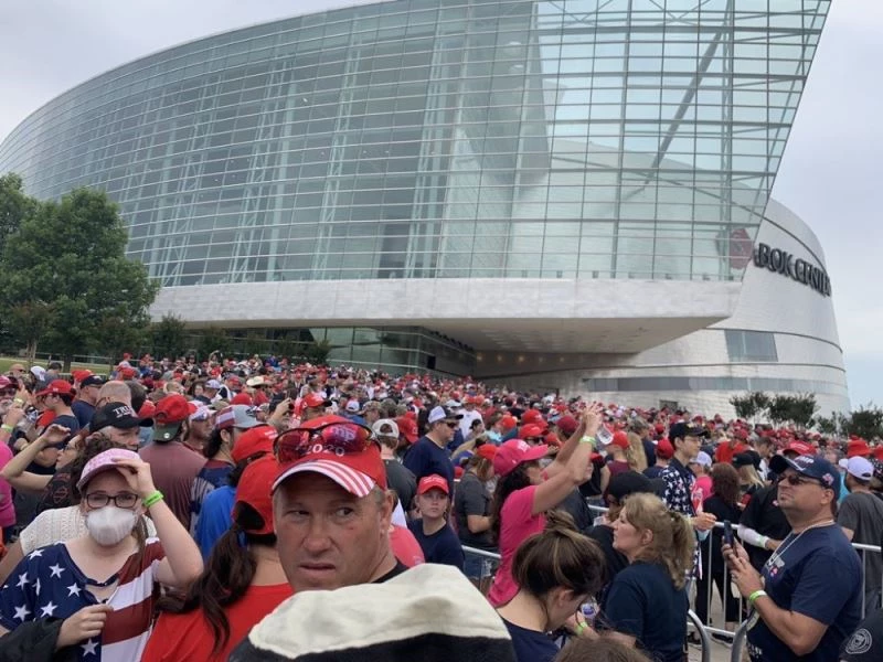 ABD Başkanı Donald Trump, korona virüs salgını nedeni ile ara verdiği mitinglerine bugün Oklahoma eyaletine bağlı Tulsa kentinde bulunan 19 bin kişilik kapalı spor salonunda yeniden başlıyor. Binlerce Trump destekçisi spor salonunun dışında bir araya geldi. Destekçilerin çoğunun sosyal mesafe kuralına uymadığı ve maske takmadıkları görüldü. Trump’ın seçim kampanyasında görevli 6 kişide ise mitinge saatler kala korona virüs tespit edildi. Katılımcıların salona girişte ateşlerinin ölçülmesi için güvenlik noktası kurulurken, maske ve el dezenfektanı dağıtılacak.
