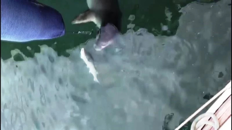Bodrum kıyılarında sıkça görünmeye başlayan fok balıkları kıyıda balık avlarken görüntülendi. Fok balığının balık avlamasını izleyen vatandaşlar gözlerine inanamadı.