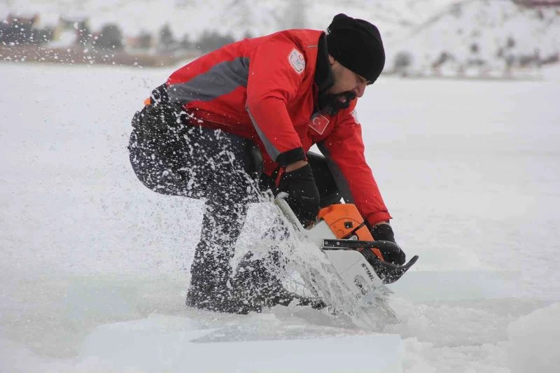 Milli sporcu Birgül Erken, dünyada bir daha kırılamayacak bir rekorun deneme antrenmanı için Sivas’ta buzla kaplı Tödürge Gölü’ne daldı.