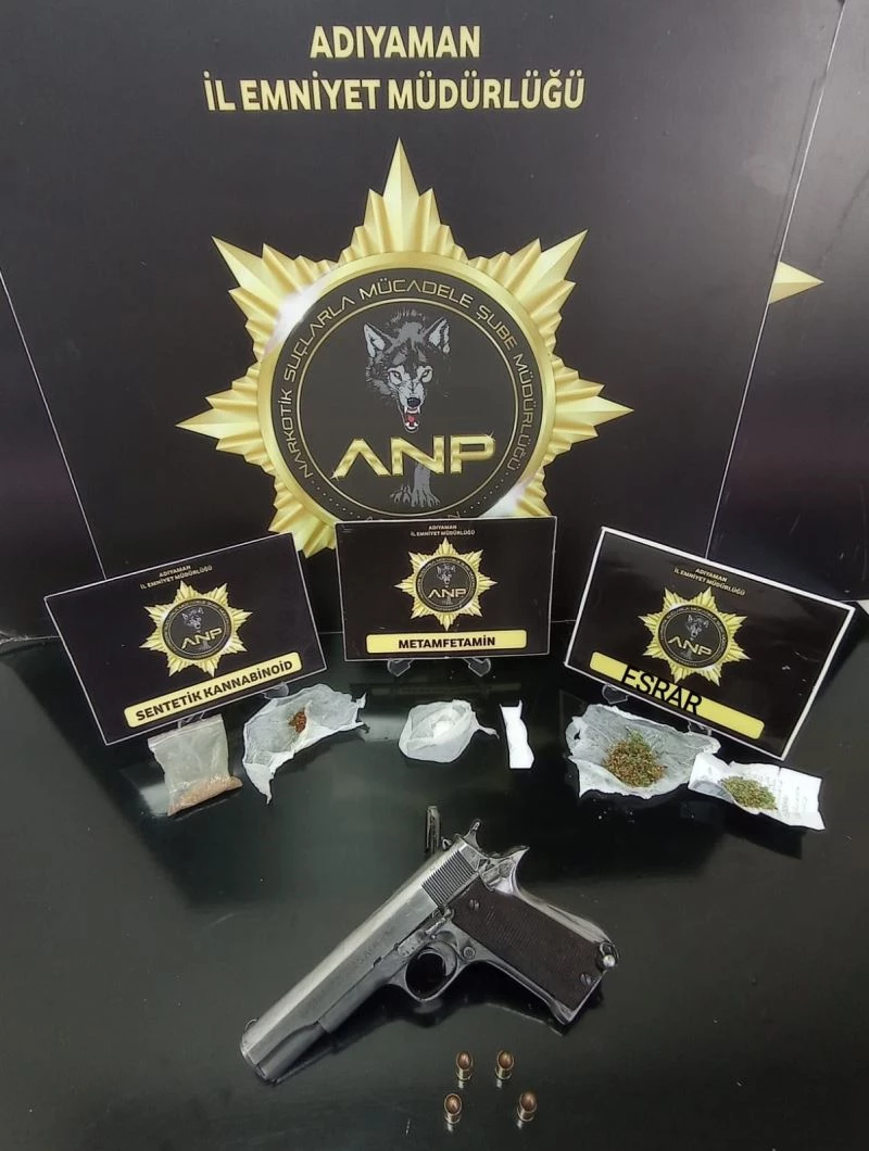 Edinilen bilgilere göre, Adıyaman Cumhuriyet Başsavcılığı koordinesinde yürütülen uyuşturucuyla mücadele çalışmaları kapsamında Narkotik Suçlarla Mücadele Şube Müdürlüğü ekiplerince yapılan son 1 haftalık çalışma kapsamında 16 farklı olayda 32 şahsın üzerinde uyuşturucu madde ele geçirildi. Uyuşturucuyla yakalanan 32 şahıs hakkında işlem yapıldı. Polis ekipleri aynı zamanda son 1 haftalık 16 farklı olayda 3.60 gram esrar, 37.33 gram metamfetamin, 29.2 gram bonzai, 1 adet uyuşturucu hap, 4 adet uyuşturucu kullanma aparatı, 2 adet ruhsatsız tabanca ve bu tabancalara ait 6 adet mermi ele geçirildi.