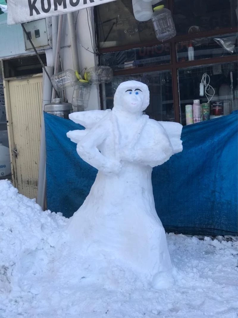 Kastamonu’nun Azdavay ilçesinde esnaflar canları sıkılınca kardan çeşitli figürler yaptı. Uzun süre sonra karla buluşan vatandaşların yaptıkları birbirinden ilginç kardan figürleri görenler ise cep telefonlarına sarıldı. Vatandaşlar görüntüledikleri kardan adamları sosyal medya hesaplarından paylaştı. İlginç kardan adamlar, sosyal medyada büyük ilgi gördü.