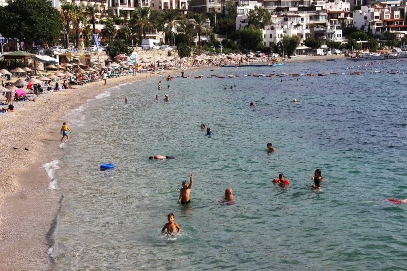 Hava sıcaklığının 32 derece olduğu Bodrum’da yerli ve yabancı turistler denizlere akın etti.