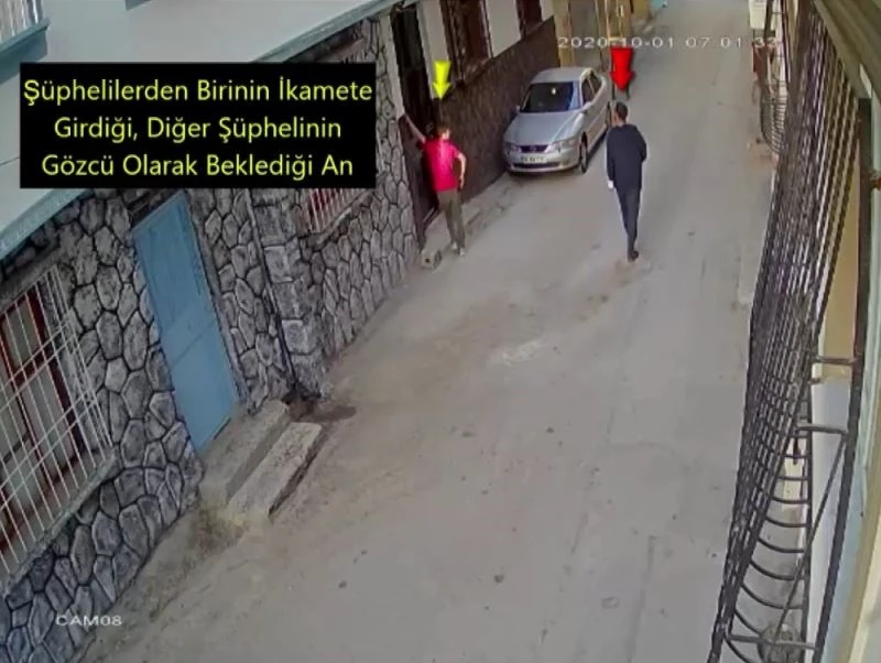 Olay, Şahinbey İlçesi 75. Yıl Mahallesinde gerçekleşti. Güvenlik kamerasına anbean yansıyan görüntülerde, şüphelilerden birinin hırsızlık için bir eve girdiği diğerinin ise o esnada etrafı gözetlediği görüldü. Güvenlik kamera görüntülerini inceleyen Gaziantep Emniyet Müdürlüğü ekipleri, şüphelileri tespit ederek, gözaltına aldı. Şüpheliler yasal işlemlerinin ardından adli makamlara sevk edildi.