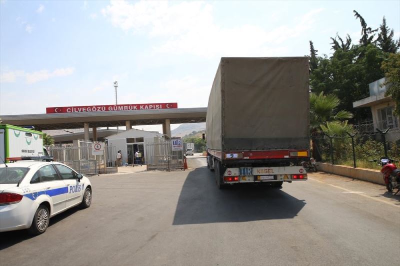 BM'nin yardimlarini tasiyan tirlar, Hatay'in Reyhanli ilçesindeki Cilvegözü Sinir Kapisi'ndan geçis yapti.