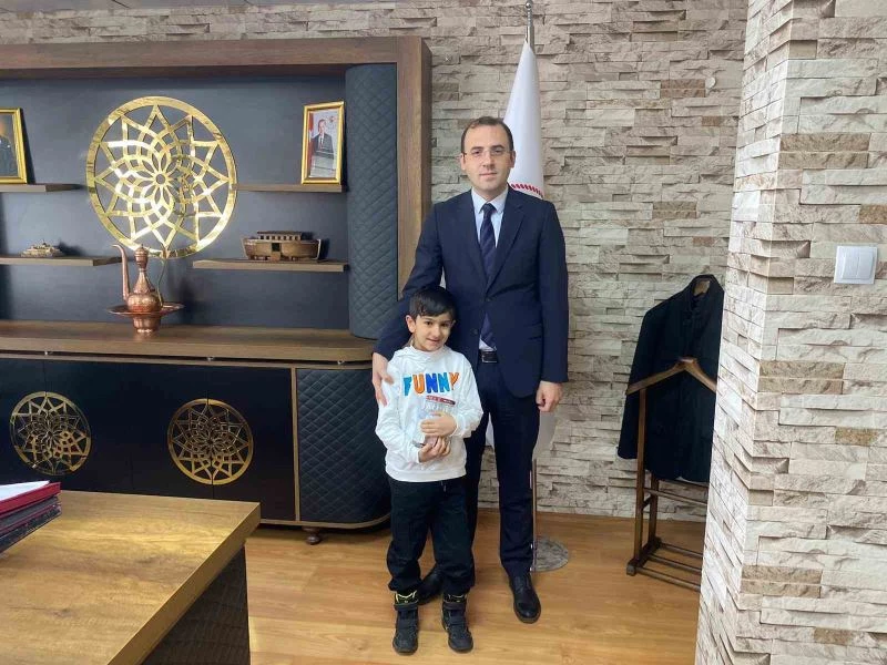 Ardından Vali Vekili Bülent Şimşek ile hatıra fotoğrafı çekilen Erdem, kumbarasındaki parayı depremzedelere ulaştırılmak üzere AFAD hesabına yatırdı.