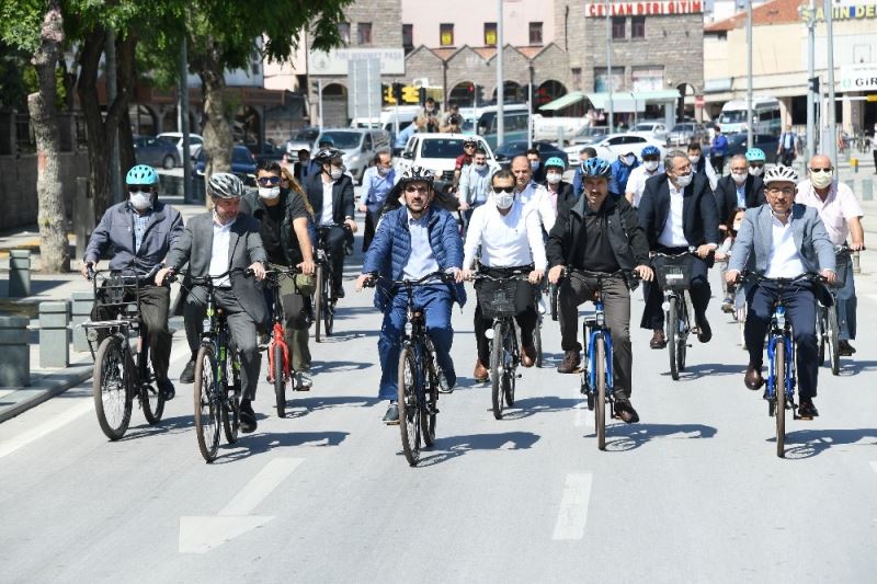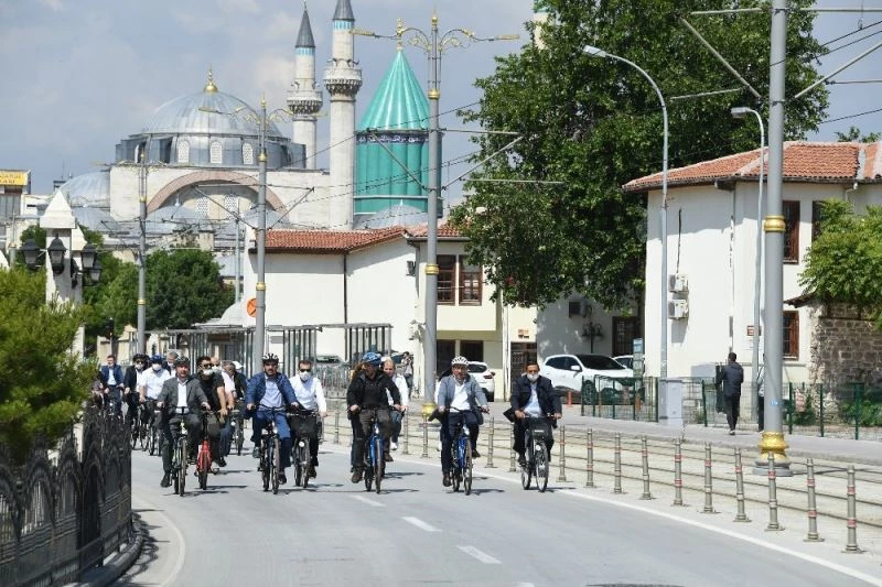 Başkan Altay, daha sonra Karatay Belediye Başkanı Hasan Kılca, Meram Belediye Başkanı Mustafa Kavuş, Selçuklu Belediye Başkanı Ahmet Pekyatırmacı, Konya Motosiklet, Bisiklet Tamirciler Esnaf Odası Başkanı Ömer Bardakcı ve bisikletseverlerle birlikte bisiklet kullandı.