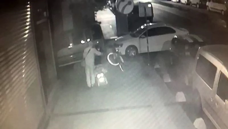 Gecenin karanlığını fırsat bilen ve soğukkanlı bir şekilde hırsızlık olayını gerçekleştiren şüphelinin o anları ise iş yerinin güvenlik kamerasına yansıdı. Görüntülerde kafasında bere ve yüzünde cerrahi maske bulunan şahıs bisikleti ile cadde üzerinde park edilmiş olan motosikletin yanına geldiği görüldü. Şahsın ağaca bağlı motosikletin kilidini kırdığı ve motorunu çalıştırıp olay yerinden uzaklaştığı anlar da saniye saniye güvenlik kamerası görüntülerine yansıdı.