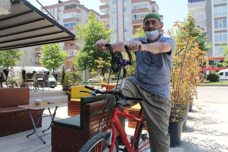 Samsun’da 61 yaşındaki İbrahim Topaloğlu, yokuş çıkmak için bisikletine el pedalı ekleyerek 40 yıllık hayalini gerçekleştirdi. Bisikletine ön tekere bağlı elle çevrilebilen bir sistem ekleyen Topaloğlu, bu sistemle ilerleyen yaşına rağmen zorlanmadan bisiklet kullandığını söyledi.