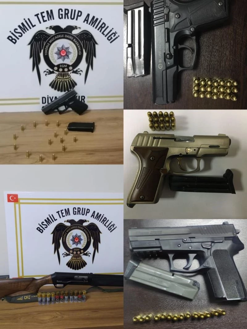 Bismil İlçe Emniyet Müdürlüğü görevlilerince 1-15 Nisan tarihleri arasında gerçekleştirilen huzur uygulamasında 3 adet ruhsatsız tabanca, 1 adet ruhsatsız av tüfeği, 1 adet kurusıkı tabanca ele geçirildi. Aranan şahısların yakalanmasına yönelik yapılan çalışmalarda ise toplam 15 şahıs yakalandı. Yakalanan şahıslar hakkında 6136 sayılı Kanun’a muhalefet eden 5 kişi hakkında yasal işlem başlatılırken, hakkında farklı suçlardan kesinleşmiş hapis cezası ve yakalama kararı bulunan 15 kişi emniyetteki işlemlerinin ardından Bismil Adalet Sarayı’na sevk edildi.