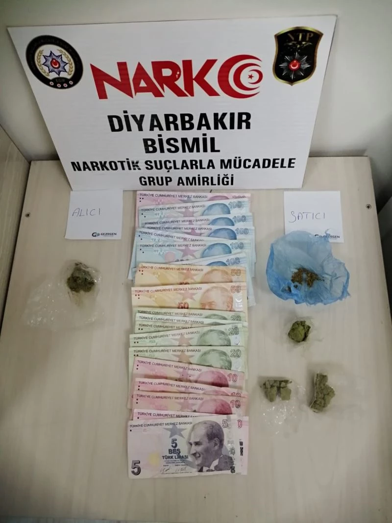 Bismil İlçe Emniyet Müdürlüğü Narkotik Suçlarla Mücadele Grup Amirliğine bağlı ekipler uyuşturucu satıcılarına yönelik operasyon düzenledi. Bismil genelinde ve halkın yoğun olarak bulunduğu park ve bahçelerde uyuşturucu madde kullanımı ve ticaretinin önlenmesi amacıyla, uyuşturucu madde satıcılarına yönelik yapılan çalışmalarda toplamda 10 şahsa uyuşturucu madde ticareti suçundan işlem yapıldı. Operasyonlarda toplamda 13 paket halinde 500 gram toz esrar maddesi ve 80 gram kubar esrar maddesi ele geçirilerek, 2 bin 65 liraya el konuldu. Gözaltına alınan 10 kişiden 7’si adli makamlarca tutuklandı.