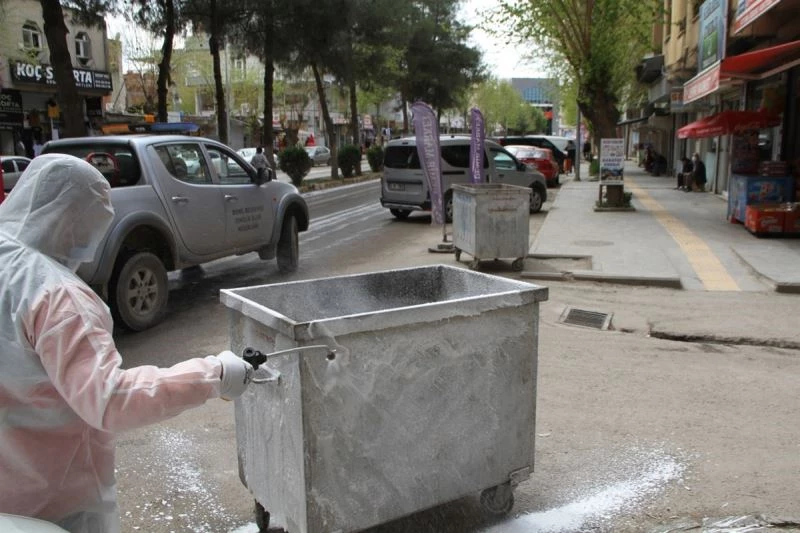 Diyarbakır’ın Bismil İlçe Belediyesi, yaz sıcağında kötü kokuları engellemek ve haşere, mikrop üreme alanlarını ortadan kaldırmak için çöp konteynerlerini ilaçlı su ile periyodik olarak temizliyor.