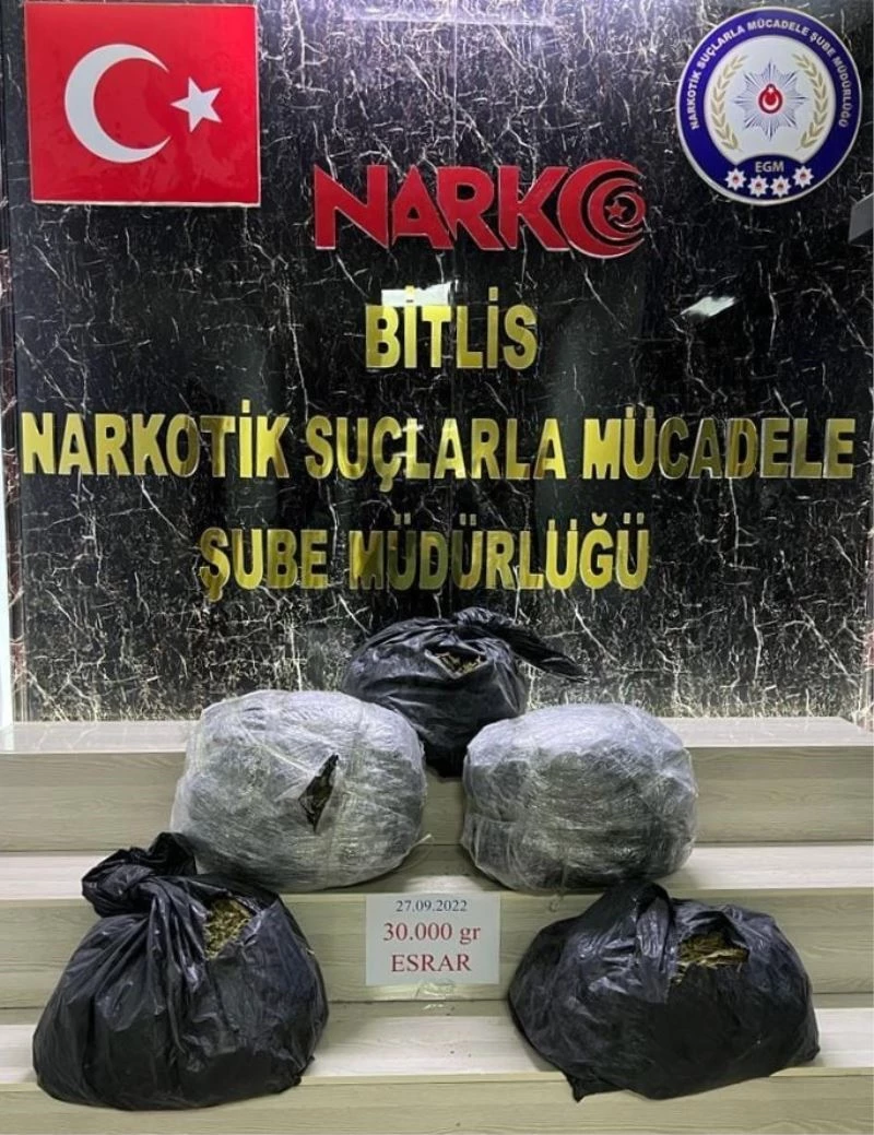 Bitlis’te polis ekipleri tarafından 2 araçta yapılan aramada 30 kilo esrar ele geçirildi.