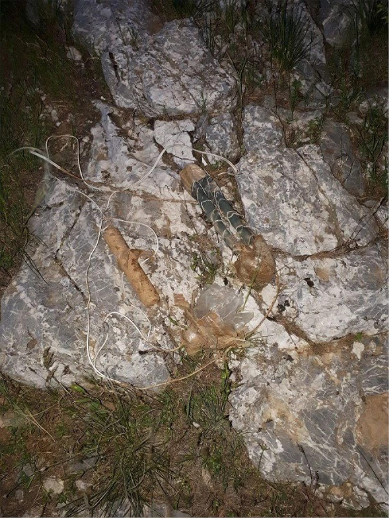 Bitlis merkez kırsalında jandarma ekipleri tarafından yapılan operasyonda ele geçirilen 2 kilogram ağırlığında amonyum nitrat ile güçlendirilmiş, basma tip ateşleme anahtarlı el yapımı patlayıcı imha edildi.