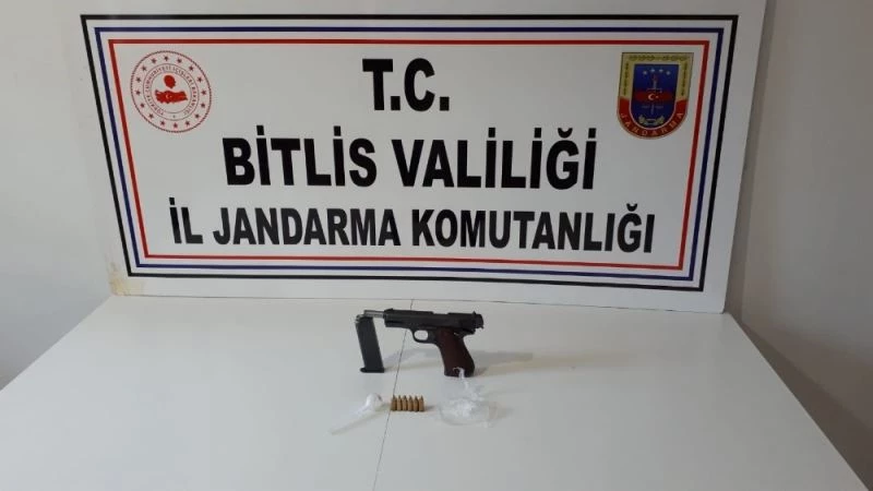 Bitlis’in Tatvan ilçe kırsalında araç içerisinde 1 adet ruhsatsız tabanca ve fişek ele geçirildi.