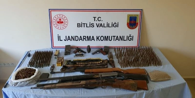 Bitlis’in Mutki ilçesinde jandarma ekipleri tarafından yapılan operasyonda 1 adet uzun namlulu tüfek, 2 adet ruhsatsız av tüfeği, 2 adet ruhsatsız tabanca, el bombası ve çok sayıda mühimmat ele geçirilirken, olayla ilgili 3 kişi gözaltına alındı.