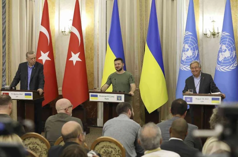 BM Genel Sekreteri Antonio Guterres, Ukrayna Devlet Başkanı Vladimir Zelenskiy ve Cumhurbaşkanı Recep Tayyip Erdoğan, Ukrayna-Rusya savaşını diplomatik yollarla sona erdirmek için atılabilecek adımları, Ukrayna tahılının dünya pazarlarına ihracatı ve Zaporijya Nükleer Santrali’nin güvenliği gibi konuları görüşmek üzere, Ukrayna’nın Lviv kentinde bir araya geldi. Guterres, Cumhurbaşkanı Erdoğan ve Zelenskiy ile katıldığı üçlü görüşmenin ardından düzenlenen basın toplantısında, Rusya’nın kontrolü altında tuttuğu Ukrayna’nın Zaporijya Nükleer Santrali konusunda duyduğu endişeyi dile getirdi. Guterres, santralin silahsızlandırılması için çağrıda bulunarak, Zaporijya Nükleer Santraline verilen herhangi bir zararın "intihar" olacağını söyledi.