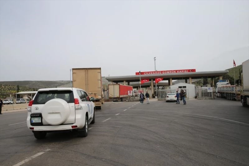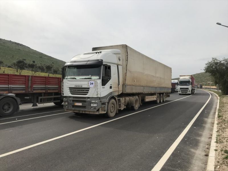 BM'nin yardimlarini tasiyan tirlar, Hatay'in Reyhanli ilçesindeki Cilvegözü Sinir Kapisi'ndan geçis yapti.