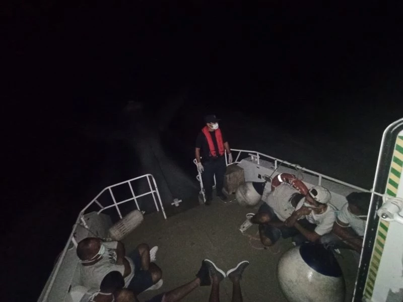Muğla’nın Bodrum ilçesi açıklarında Yunan askeri tarafından Türk karasularına itilen 7 düzensiz göçmen kurtarıldı.