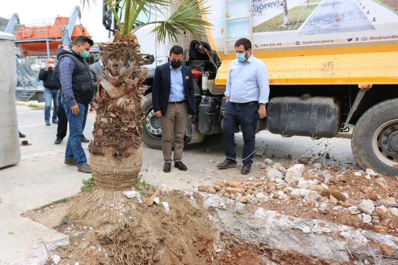 Bodrum Belediye Başkanı Ahmet Aras Kumbahçe Mahallesi mevkiine yerleştirilen yer altı konteynırı için başlatılan çalışmaları başkan yardımcıları ve birim müdürleri ile birlikte yerinde inceledi.