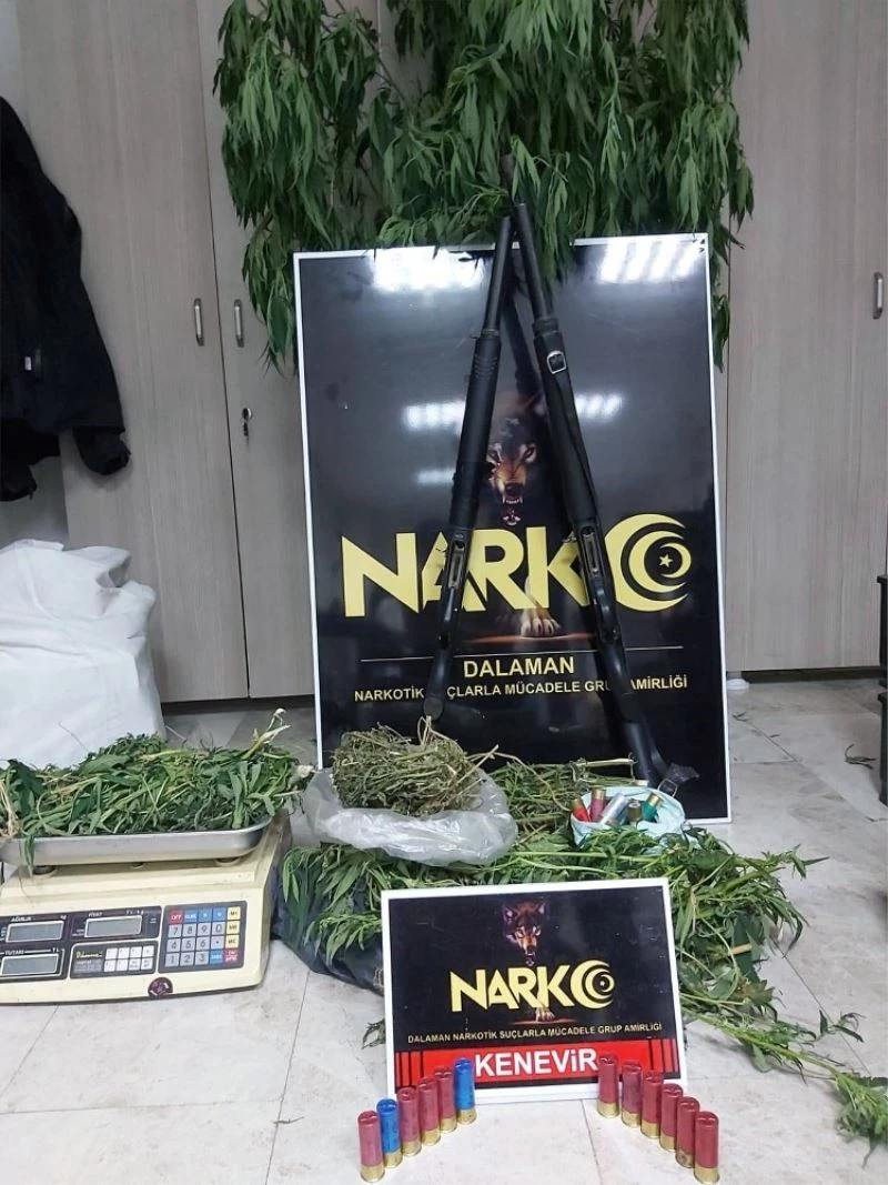 Muğla Emniyet Müdürlüğü Bodrum ve Dalaman Narkotik Suçlarla Mücadele Grup Amirliği ekipleri aldıkları istihbari bilgiler doğrultusunda beş ayrı noktaya operasyon düzenledi. İlgili savcılıklardan alınan arama kararı sonrası yapılan operasyonlarda 38 kök 2-5 metre arası hint keneviri, 235 kök yeni dikilmiş fide halinde kenevir, 5 parça halinde Bin 407 gram esrar 10 gram Skunk 3 gram toz esrar, 3 gram Metamfetamin, hassa terazi,2 adet pompalı tüfek ele geçirildi.