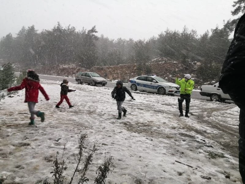 Milas’ta sabah saatlerinde yüksek kesimlerde kar yağışı görüldü. Milas genelinde yüksek kesimlerde yer alan birçok mahallede kar sevinci yaşandı. En son 1979 ve 1987 yıllarında kar yağan Milas’taki Alatepe, yıllar sonra beyaz örtüye büründü. Bir yanda Ören sahili, diğer yanda Gökova Körfezi’ni içine alan kar manzarası doyumsuz görüntüler oluşturdu. Milas’a bağlı Kalem Mahallesi’nde de tam 35 yıl sonra kar yağdı. Mahalleli, çocuklarla kartopu oynadı, kardan adam yaparak keyifli anlar yaşadı. Trafik polisleri ise ilk kez kar gören çocuklarla kartopu oynayıp, kardan adam yaptı.