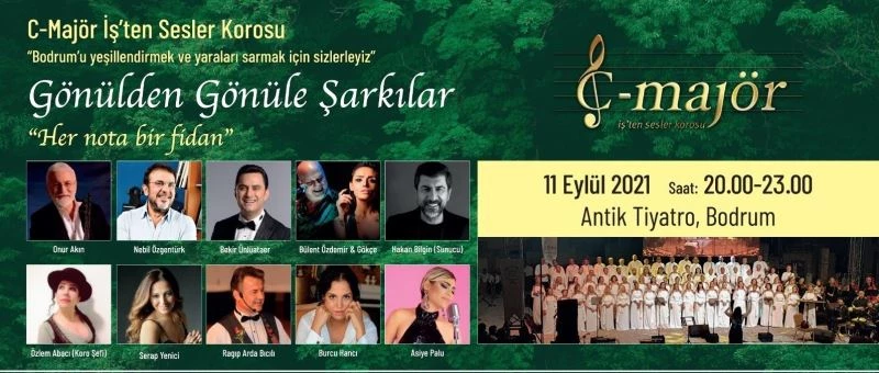 İş adamlarının bir araya gelerek kurduğu C-Majör İş’ten Sesler Korosu, Muğla’nın Bodrum ilçesinde yanan alanların yeniden ağaçlandırılması ve yangından etkilenen vatandaşlara destek için “Her nota bir fidan” temasıyla sahneye çıkacak.