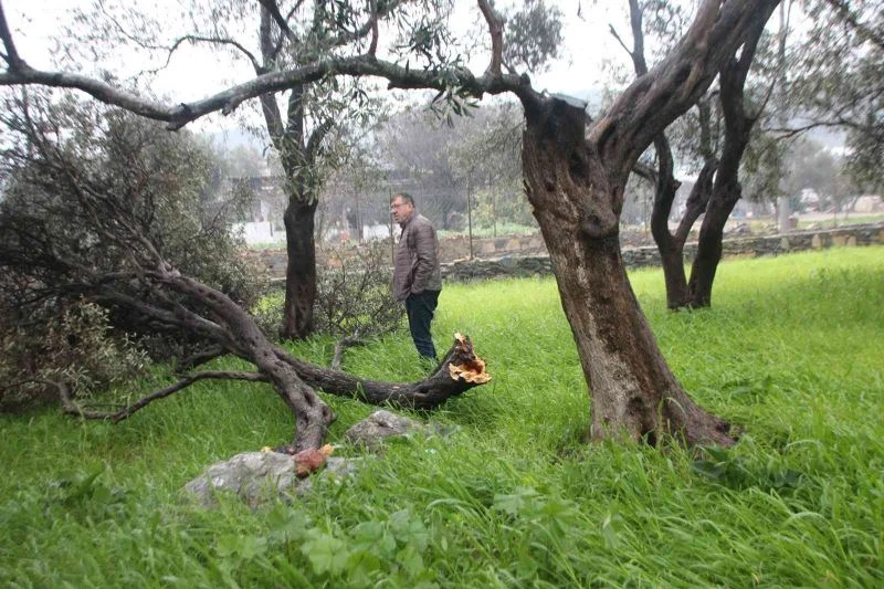 Muğla’nın Bodrum ilçesinde hortum nedeniyle 10’dan fazla zeytin ağacı zarar görürken, bir evin paneli de uçtu.
