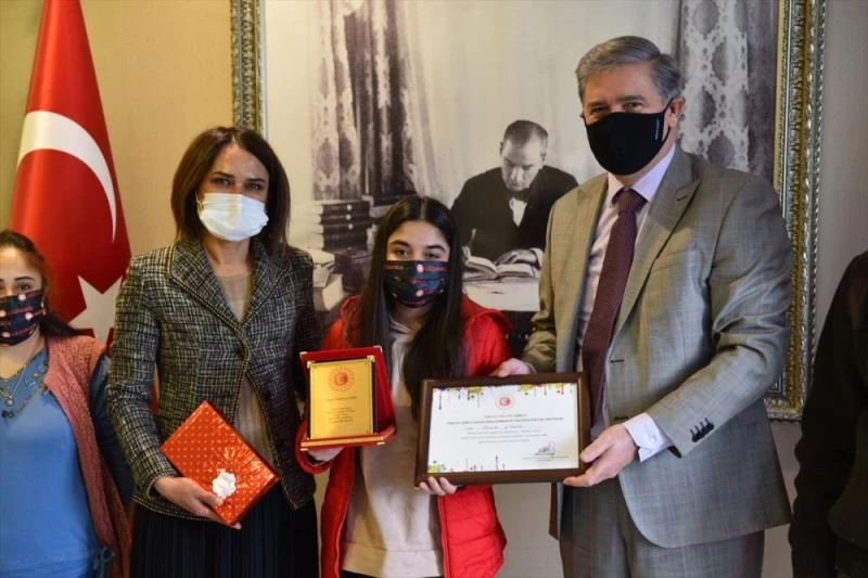 MUĞLA (AA) - Bodrum ilçesinde, Türkiye genelinde düzenlenen karikatür yarışmasında Muğla birincisi olan öğrenciye ödül verildi.