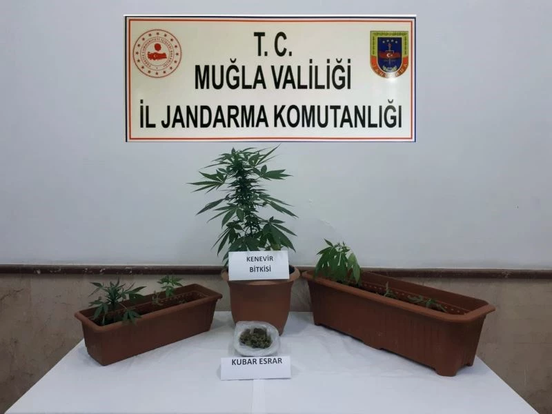 Bodrum İlçe Jandarma ekipleri Mumcular Mahallesinde bir eve düzenlediği operasyonda kenevir bitkisi ve kubar esrar ele geçirdi.