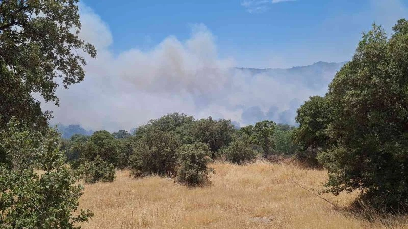 Muğla’nın Bodrum ilçesinde makilik alanda çıkan yangını söndürme çalışmaları devam ediyor.