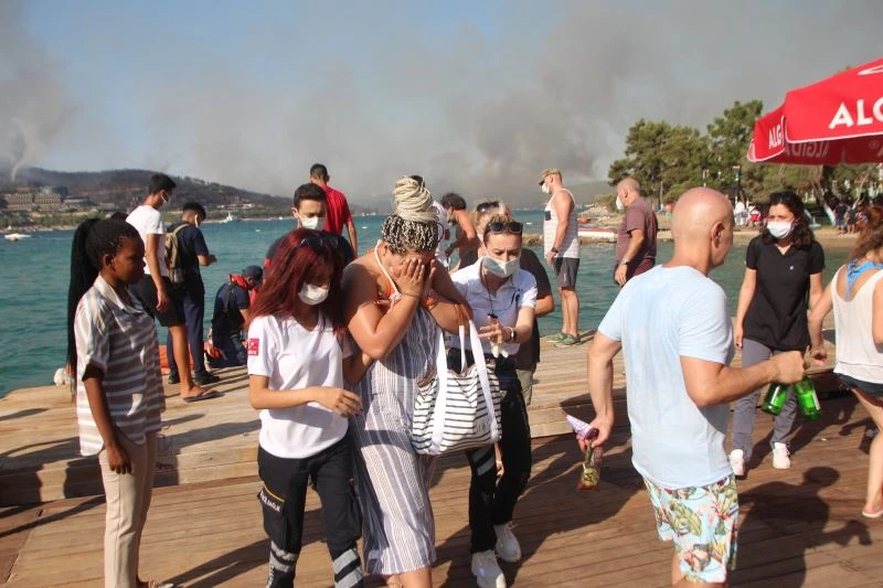 Otellere yakın noktada çıkan yangın rüzgarın da etkisiyle kısa sürede büyüdü. Ekipler canla başla yangını kontrol altına almaya çalışırken, yangın otellere yaklaştı. Olası bir tehlikeye karşı otellerin tahliye edilmesi kararı alınırken, karadan ulaşımın mümkün olmadığı otellerde vatandaşlar denizden tahliye edildi. Yangın bölgesindeki otellerde bulunan personel dahil 3 bin kişinin tahliyesi için günübirlik tur, balıkçı ve sahil güvenlik tekneleri seferber oldu. Zamanla yarışın yaşandığı tahliye sırasında teknelere alınan vatandaşlar deniz yolu ile Güvercinlik Mahallesi’ne getirildi. Bodrum Belediyesi ise tahliye edilen turistleri ilçedeki diğer otellere götürmek için çalışma başlattı.