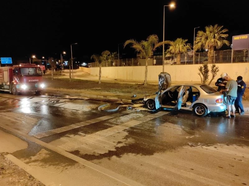 Muğla’nın Bodrum ilçesinde seyir halindeki otomobil bir anda alev topuna döndü. Motor kısmından çıkan alevler otomobili küle çevirdi.
