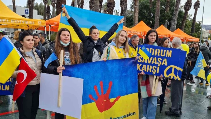 Bodrum Belediye Meydanı’nda bir araya gelen ve aralarında Bodrum’da yaşayan Ukraynalıların da olduğu yüzlerce kişi, Türkçe ve İngilizce olarak “Bodrum Savaşa Karşı”, “Çocuklar Ölmesin”, “Putin’i Durdur, Savaşı Durdur”, “Savaşa Hayır” yazılı dövizler taşıdı. Kimi katılımcıların da Ukrayna bayrakları taşıdığı görüldü.