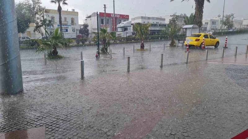 Meteoroloji Genel Müdürlüğü’nün sağanak yağış uyarısı yaptığı Muğla’nın Bodrum ilçesinde öğle saatlerinde ani sağanak etkili oldu. Yağmura dışarıda yakalanan ve şemsiyeleri yanlarında olmayan vatandaşlar, sığınacak yer aradı. Yağmurun ardından dolu da yağdı. Dolu, bazı bölgelerde kısmi beyazlamaya neden oldu. Yağışla birlikte cadde ve sokaklarda küçük su birikintileri oluştu.