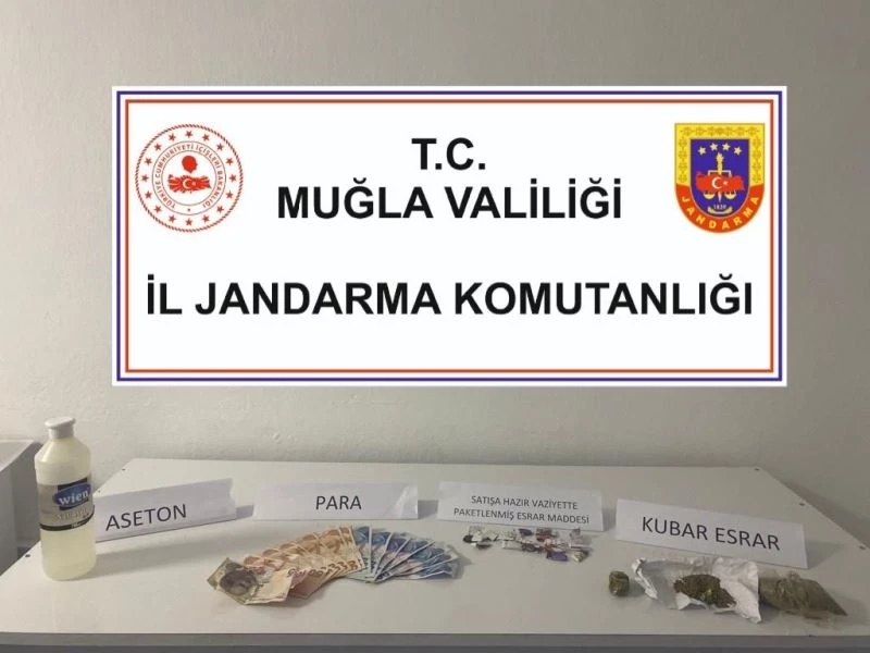 Edinilen bilgiye göre, Bodrum İlçe Jandarma Komutanlığı ekiplerince yapılan istihbari çalışmaların ardından, Turgutreis Bahçelievler Mahallesi’nde ikamet eden V.A., K.A., V.D., M.K. ve O.D. isimli şahısların ikametlerine operasyon yapıldı. Operasyonda yapılan aramada; çok miktarda kubar esrar, 1 adet uyuşturucu madde kullanma aparatı, 455 ml saf aseton ve suçtan elde edildiği değerlendirilen 1015 TL nakit para ele geçirildi. Olayla ilgili başlatılan soruşturma sürüyor.